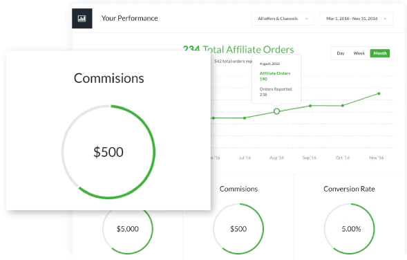 Track your sales performance through UpPromote's easy to use dashboards. Benefit from a 30-day cookie window.